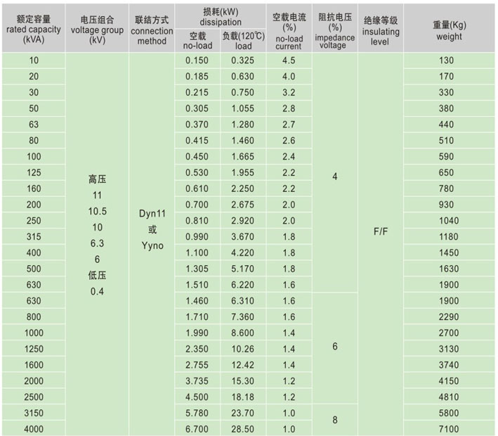 8. 短路阻抗:標準阻抗(詳見技術參數(shù)表)