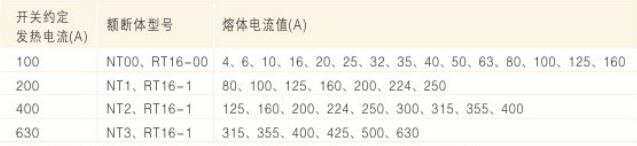 8.開關(guān)與熔斷體配用關(guān)系(見表3)