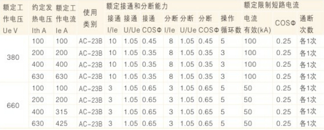3.額定工作電流:380V:100A、200A、400A、630A四種;