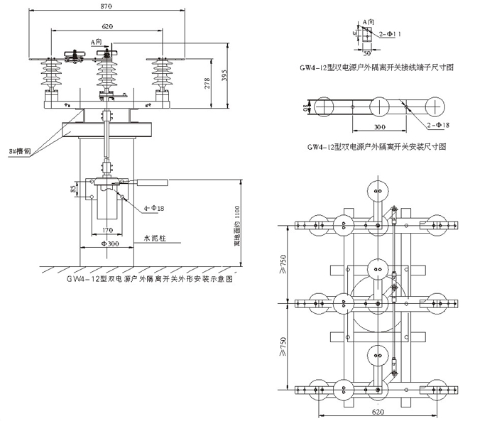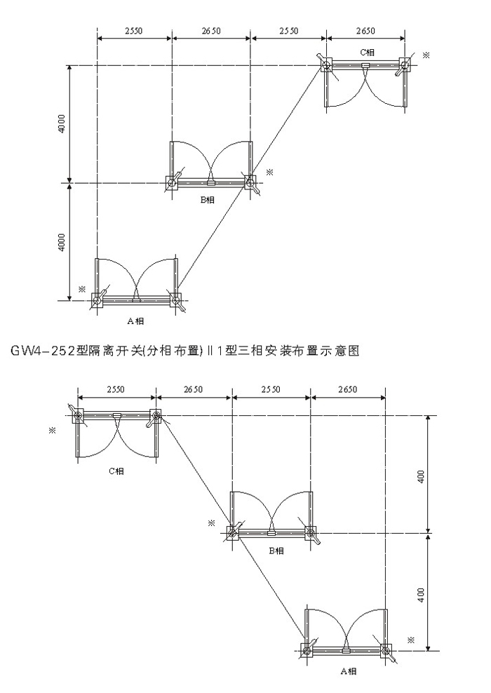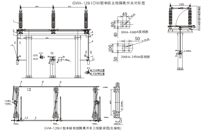 GW4-126KV單接地型隔離開(kāi)關(guān)三極聯(lián)裝圖(右接地) |
