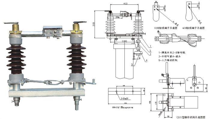 | 配用操作機(jī)構(gòu)型號(hào) | 接地 | CS8-6D | ||||