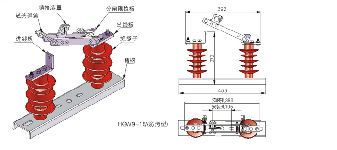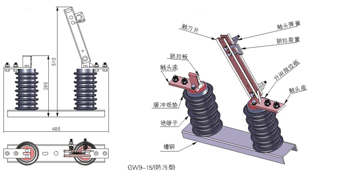 1)本產(chǎn)品為三相線路系統(tǒng)單相使用,結(jié)構(gòu)簡(jiǎn)單、經(jīng)濟(jì)、使用方便。 2)笨產(chǎn)品為單斷口垂直打開式結(jié)構(gòu),單極隔離開關(guān)支柱絕緣子安裝在各自底架上,主要由底座、支柱絕緣子、主導(dǎo)電回路部分、自鎖裝置等組成。采用閘刀式結(jié)構(gòu)分合閘達(dá)到切斷和閉合線路,每相閘刀由兩片導(dǎo)電刀片組成,刀片兩側(cè)外裝有壓縮彈簧,調(diào)節(jié)彈簧的高度可以得到開關(guān)閘刀所需要的接觸壓力。開關(guān)分合閘時(shí)用絕緣構(gòu)棒操作機(jī)構(gòu)部分,閘刀有自鎖裝置。 |