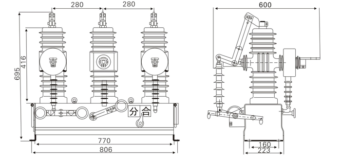 手動分閘裝置:當控制系統(tǒng)出現(xiàn)故障時,可用手動分閘作緊急分斷操作,可靠開斷額定負荷電流;