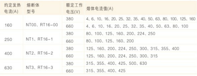 1.開關(guān)與熔斷體配用關(guān)系(見表1)