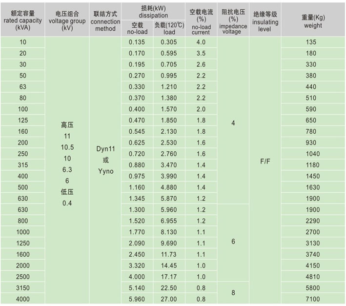 7. 聯(lián)結(jié)組標(biāo)號(hào):Yyn0、Dyn11或其它